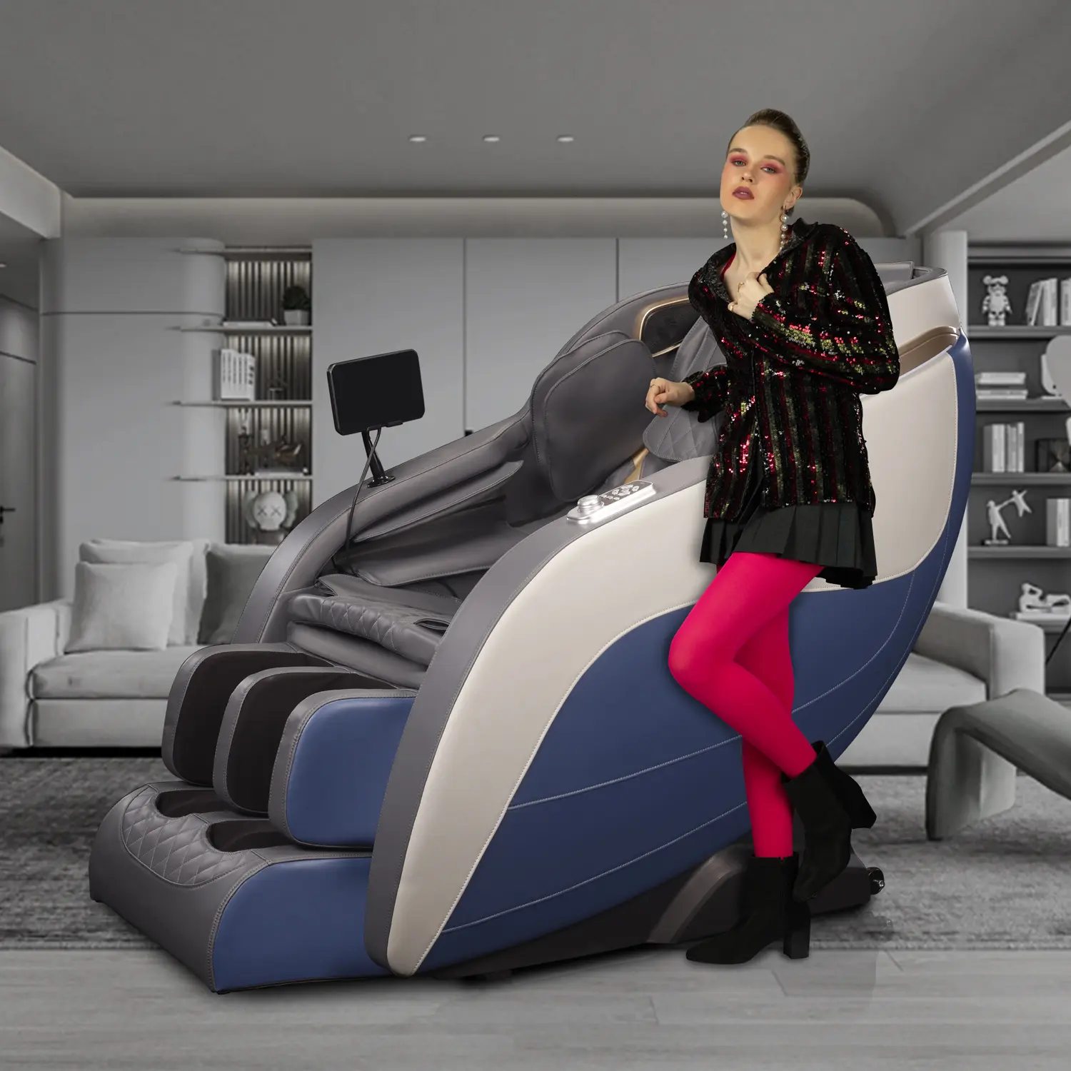 Experience Fixed roller massage, Tuina technique, full airbag coverage, motorized recline, heating, Bluetooth audio and LED rotary control.